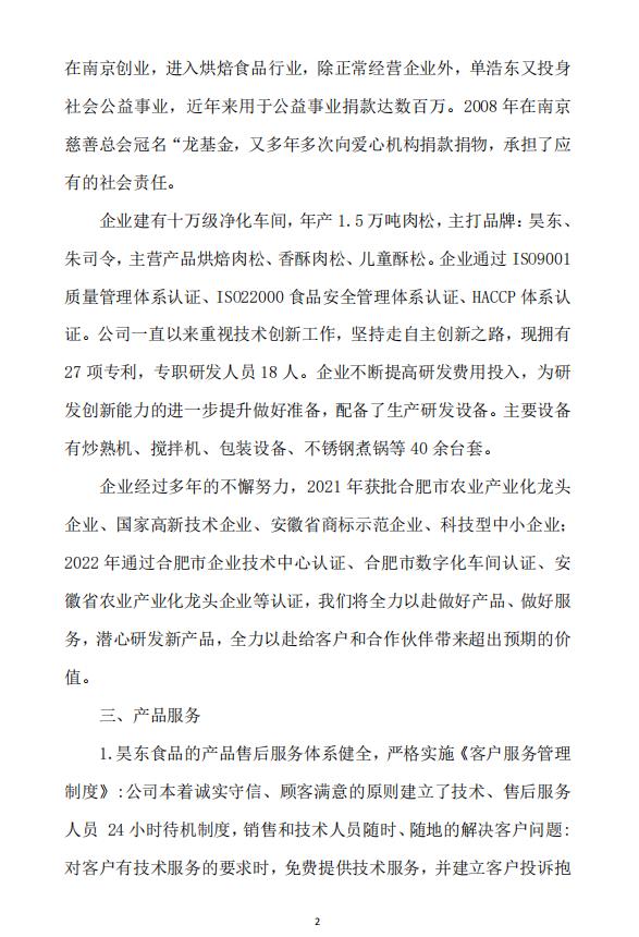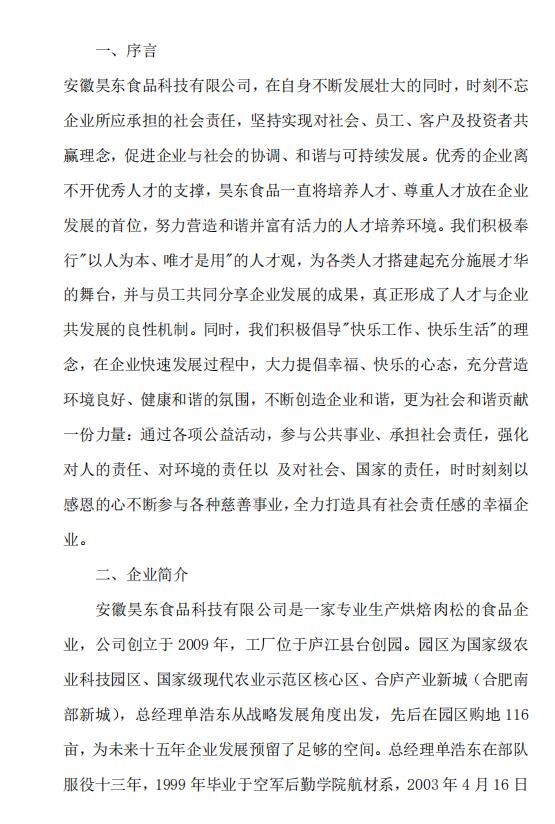 安徽昊東食品科技有限公司社會責任報告 發(fā)布日期:2023-02-21 發(fā)布人:管理員 閱讀:6734次 上一篇:抗洪救災,你我同行;重建家園,攜手并進!紀念昊東食品“7.22”抗洪一周年! 下一篇:昊東公司一行看望胡正先老紅軍,聆聽那段可歌可泣的英雄歷史 返回