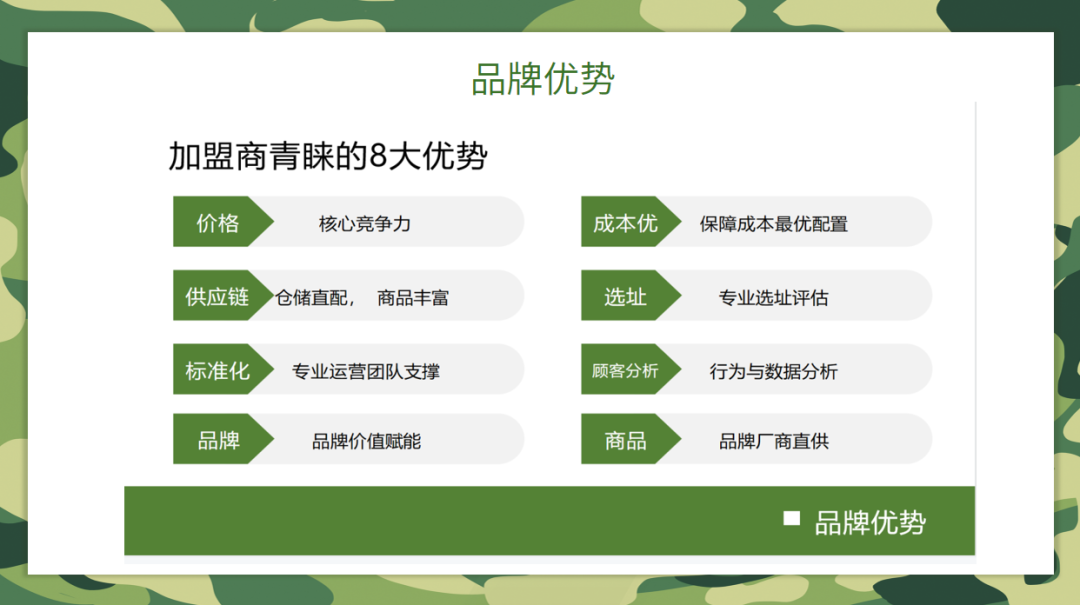 烘焙司令休閑零食連鎖店品牌的創(chuàng)立,旨在為退役軍人提供更多的創(chuàng)業(yè)和就業(yè)機(jī)會(huì)。提供店面選址、營(yíng)業(yè)員培訓(xùn)、選品、配貨到店一站式服務(wù)。連鎖店現(xiàn)已有5家門(mén)店,其中同大店于2023年4月30日開(kāi)業(yè)、郭河店于2023年6月24日開(kāi)業(yè)、湯池店于2023年8月1日開(kāi)業(yè),六安恒大店預(yù)計(jì)8月底開(kāi)業(yè),肥西小廟店正在裝修籌備中,計(jì)劃2023年底前開(kāi)10-15家門(mén)店。